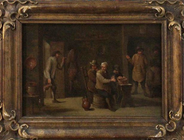 M.V Holmon Sec. XVI (1623 - 1674) Pintura Holandesa - Homens no Bar - Óleo sobre Tela Med;55x38cm Sem Moldura(Acompanha Certificado da nossa Galeria)