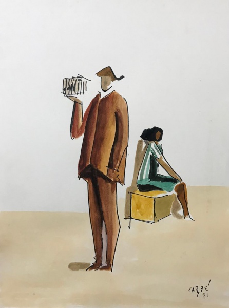 Carybé -Figuras - Técnica Mista S/Cartão (Vinil) -Med:18x24cm Sem Moldura(Acompanha Certificado da nossa Galeria)