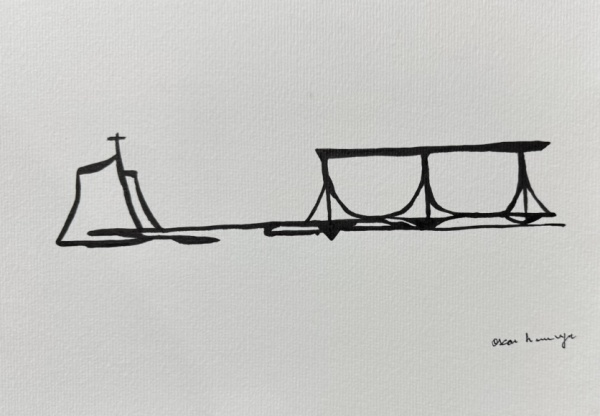 Oscar Niemeyer - Desenho - Med 30x21cm Sem Moldura ( Acompanha Certificado da nossa Galeria)